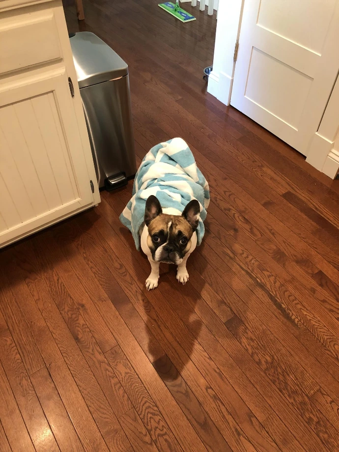 We let her out multiple times a day. Tell her “go potty” or “go poop” a few times to speed up the process as needed. You might have to wipe her butt after a poo because she’s a white dog and it is sometimes messy. She’s pretty good at telling you if she needs to go out. It’s common that she’ll want to go out again around 8:30-9PM. She has never made a mess in the house.