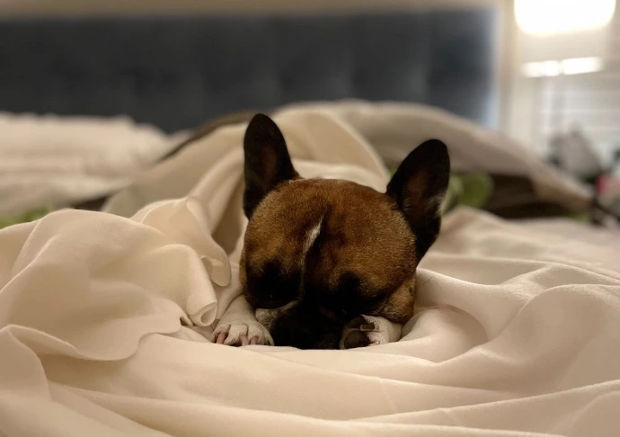 Latte likes sleeping in her kennel. If you'd like, she will not be upset if you put her in bed with you on her blanket. She will curl up and sleep until you move her out. We put her in bed with us for a short time, then she sleeps in her kennel. If you want to leave her in bed with you, that is ok too. She doesn't expect that, but it is an option.